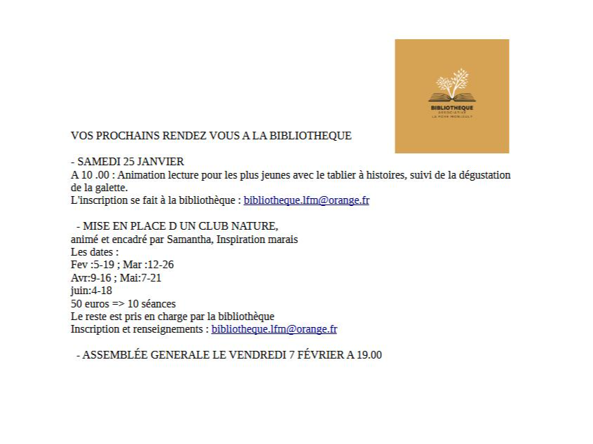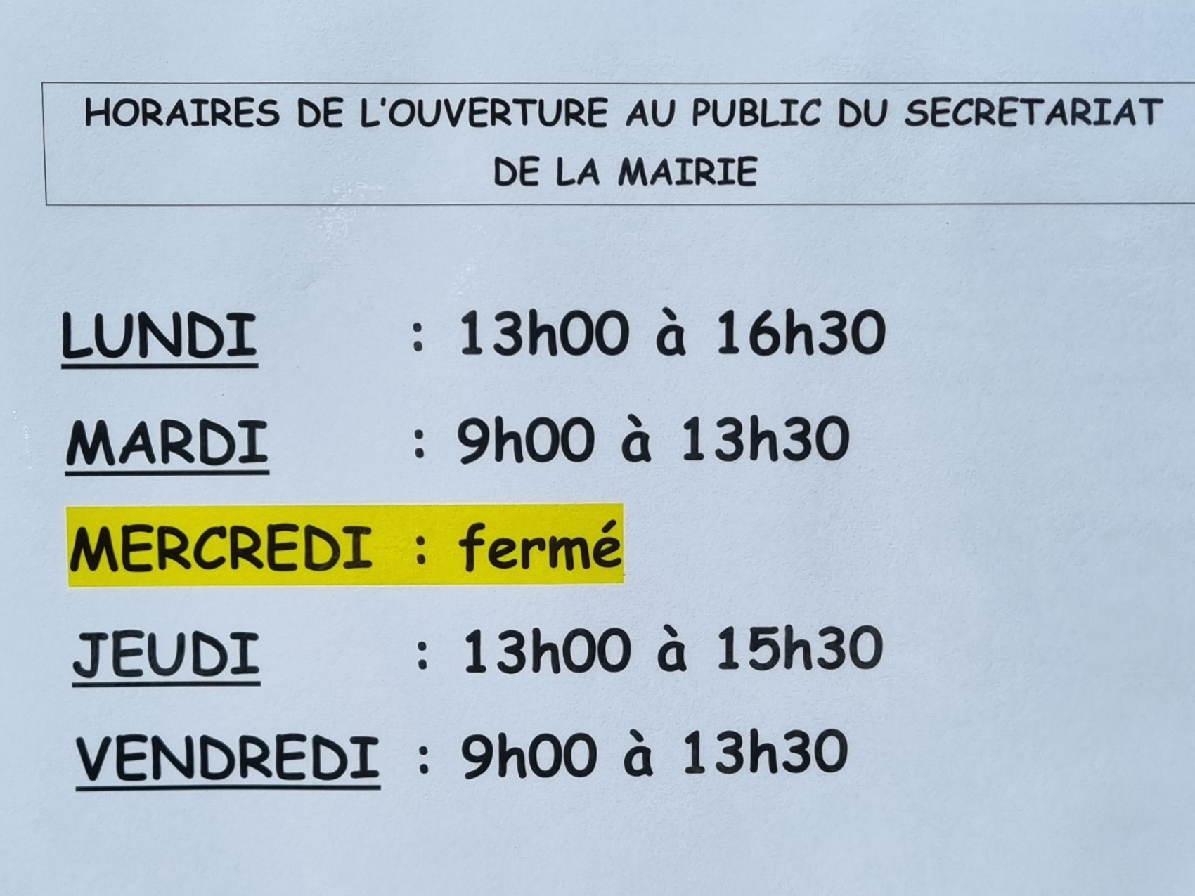 Voir toutNouveaux horaires d'ouverture de la Mairie