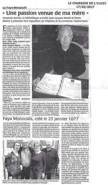Les vins de La Foye Monjault furent très tôt et très longtemps célèbres. Rabelais écrivant "les guerres pricocolines" offrit une bouteille en disant : "tenez buvez-en hardiment, j'en ai fait l'essay, c'est du vin de La Foye Monjault".